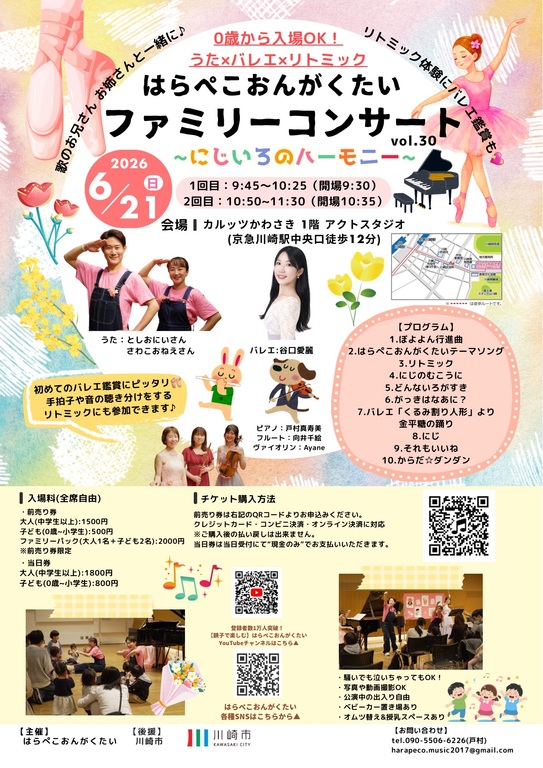 楽器の生演奏、リトミック、バレエまで!盛りだくさんのファミリーコンサートです♪